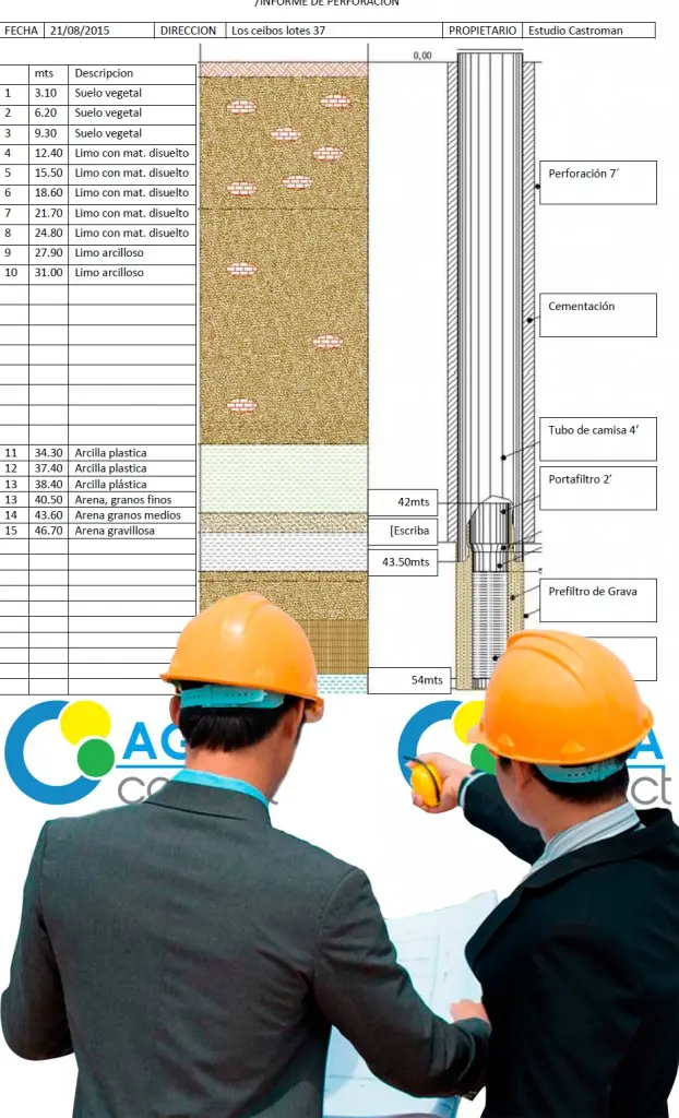 Dado que las propiedades físicas de un acuífero no se pueden cambiar, el caudal y presión que determinemos explotar va a depender del diámetro de la perforación y las capacidades hídricas de recuperación del acuífero. Por la cual es conveniente realizar una perforación de monitoreo y ensayo, para tomar un perfil eléctrico, perfil litográfico, rayos gamma, análisis bacteriológico y análisis físico – químico.