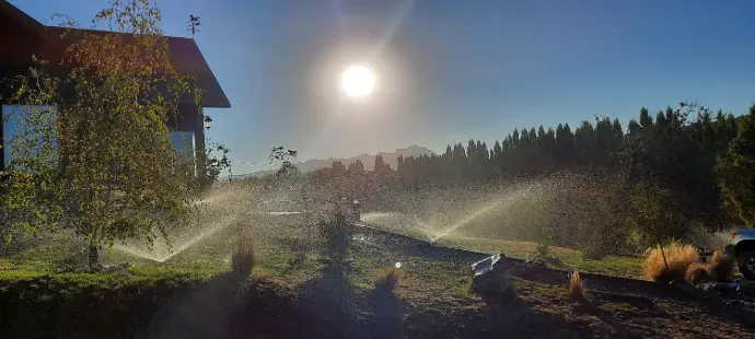 Un sistema de riego por aspersión por definición es una suerte de emulación de lluvia o, dicho de otra manera, un sistema que pulveriza el agua y la esparce sobre el terreno de forma calculada.